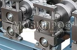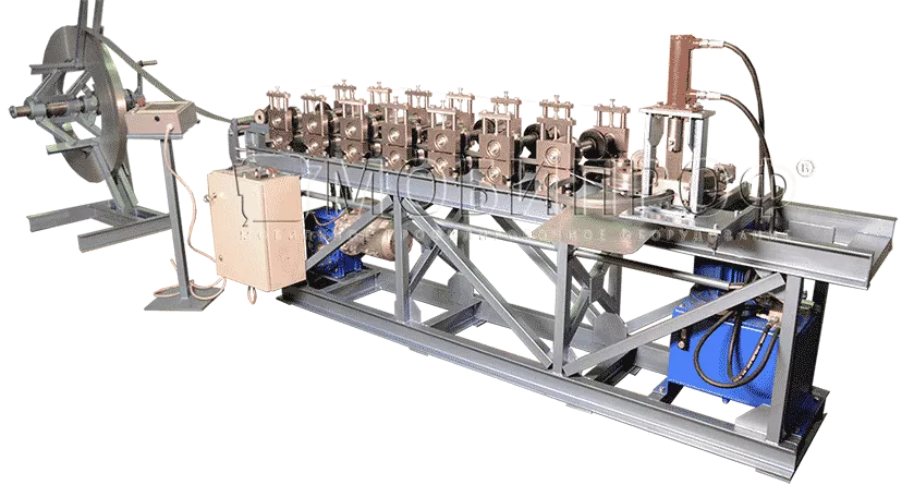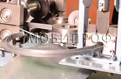 Для размотки ленты перед станком дополнительно устанавливается консольный разматыватель. Лента, проходя через набор роликов, формируется в заданный профиль. На выходе станка с помощью специального устройства прямолинейный профиль изгибается в кольцо определенного диаметра. Диаметр кольца предварительно настраивается вручную. После отрезки на гильотине с помощью выталкивателя готовое кольцо легко выходит из рабочей зоны.